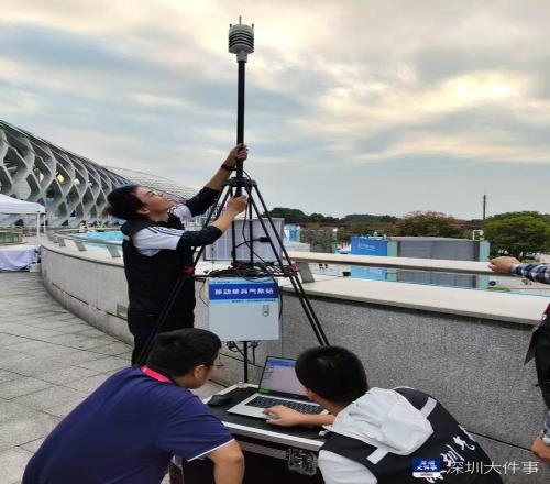 赛道旁的气象应急车内,深圳市气象局首席预报员陈训来博士正紧盯着短临预报决策支持平台上跳动的数据——来自生物舒适度观测仪的WBGT指数,以及香港加密观测点传来的深圳湾大桥段风力数据,在此刻汇于一方屏幕。
