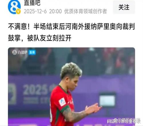 如果这个多余的动作写进裁判报告被足协处罚,纳萨里奥的大概率要缺席下赛季开头几场比赛了,这对刚刚丢冠的河南队来说无疑是雪上加霜。