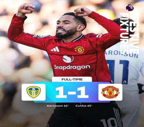 随后,库尼亚帮助曼联扳平比分,两队最终1-1握手言和。