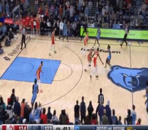 灰熊主帅在还有暂停的情况下,竟然忍住没叫,就让莫兰特直接从后场推到前场,然后莫兰特3分线外运球脱手,没时间,只好超远三分强投,砸筐而出,绝杀不中。